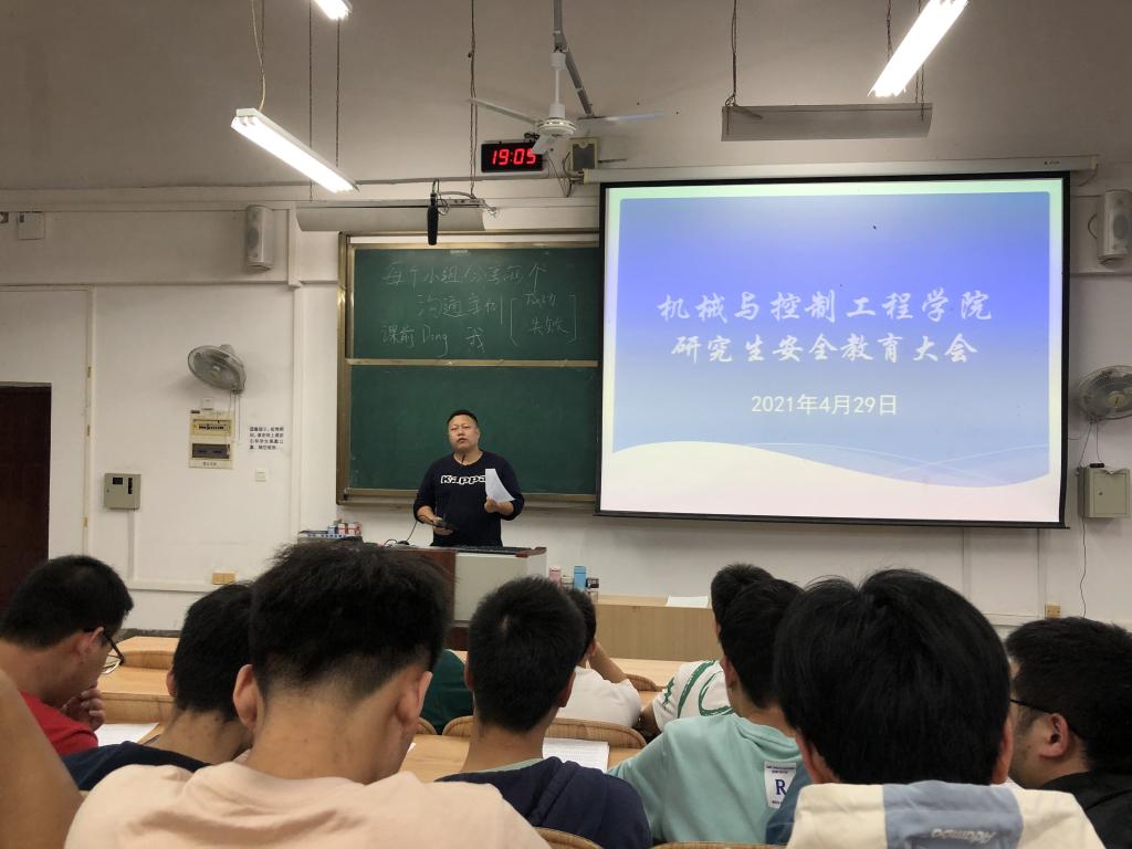 为提高研究生的安全意识,强化学院对研究生的安全教育和管理,4月20日晚,机械与控制工程学院在07318教室举行了研究生安全教育大会,会议由学院学工组副组长、研究生辅导员马文硕老师主持。