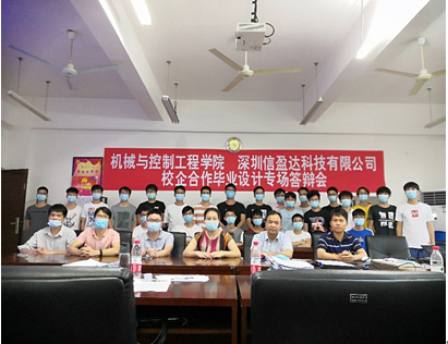 2020年6月6日,机械与控制工程学院与深圳信盈达科技有限公司校企合作自动化专业毕业设计专场答辩会在雁山校区07215举行。答辩委员会由校内教师和企业工程师组成,机械与控制工程学院副院长李海侠、自动化教研室主任王文成以及深圳信盈达科技有限公司南宁分公司技术总监陈醒醒高级工程师等3名工程师参加了答辩会。