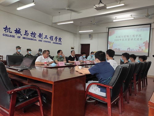 5月29日,机械与控制工程学院于07215会议室举行2020年征兵宣讲交流会。出席本次会议的领导有学院党委耿俊茂书记、党委王迎波副书记,学校武装部黄海副部长一行。此外,学院还邀请到桂林市七星区武装部部长张松军一行到场为我院报名入伍的23名学生答疑解惑。