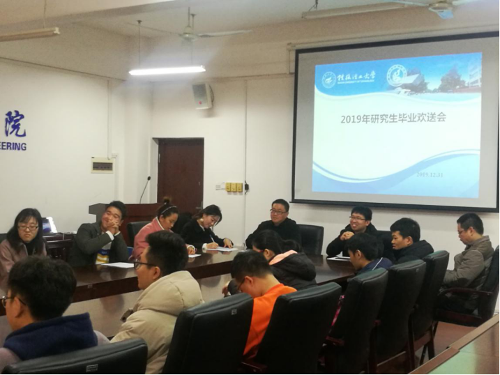 12月31日下午15:00,机械与控制工程学院在雁山校区07215会议室举行了以“欢送2019届研究生”为主题的毕业欢送会,学院党委副书记王迎波,副院长孙旋、导师代表周凯红教授、研究生辅导员张敏、研究生教学秘书耿琳琳出席欢送会。师生欢聚一堂,为开云官方端网站登录入口2019届的专硕毕业生送上祝福。