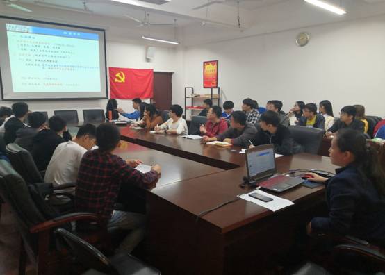 2019年11月5日星期二中午,学院副院长李海侠在雁山校区07215会议室为学生第一党支部上“红军长征”主题党课,支部全体党员和积极分子参与会议,重温历史,感悟初心。