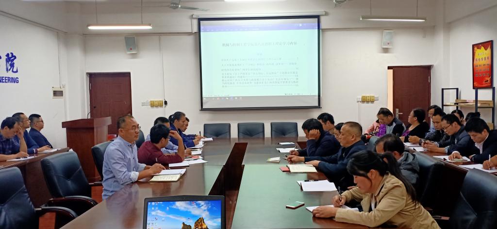2019年11月5日,学院党委中心组举行(扩大)学习会,进行第八次集体理论学习,同时开展党风廉政工作研讨。会议由学院党委书记耿俊茂主持。学院领导、党委委员、教工党员等参加了学习。