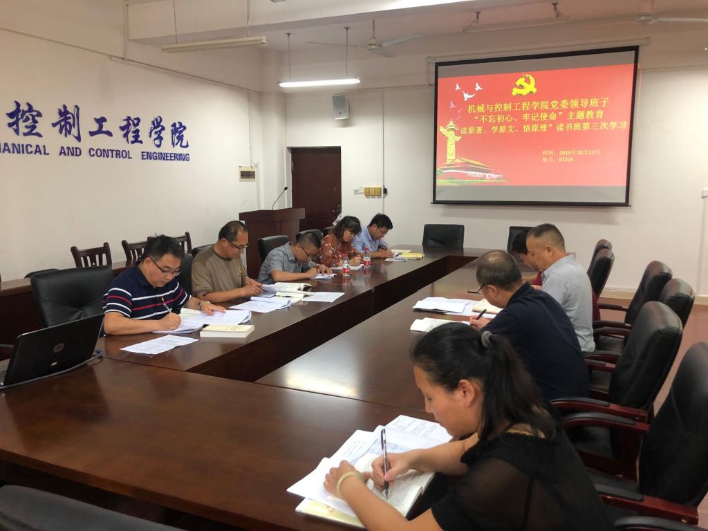 10月11日下午,我院在雁山校区07215会议室召开了“读原著、学原文、悟原理”集中学习。学院全体党政领导班子参加会议,此次会议由党委书记耿俊茂主持。