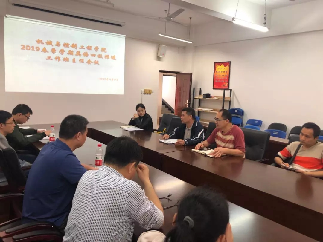2019年4月9日下午,机械与控制工程学院2018春季学期英语四级工作推进班主任会议在07215会议室召开。参加此次会议的有开云官方端网站登录入口党委书记麦范金、院长张烈平、党委副书记耿俊茂、副院长李海侠,学工办全体辅导员以及2017、2018级班主任出席会议,会议由党委副书记耿俊茂主持。
