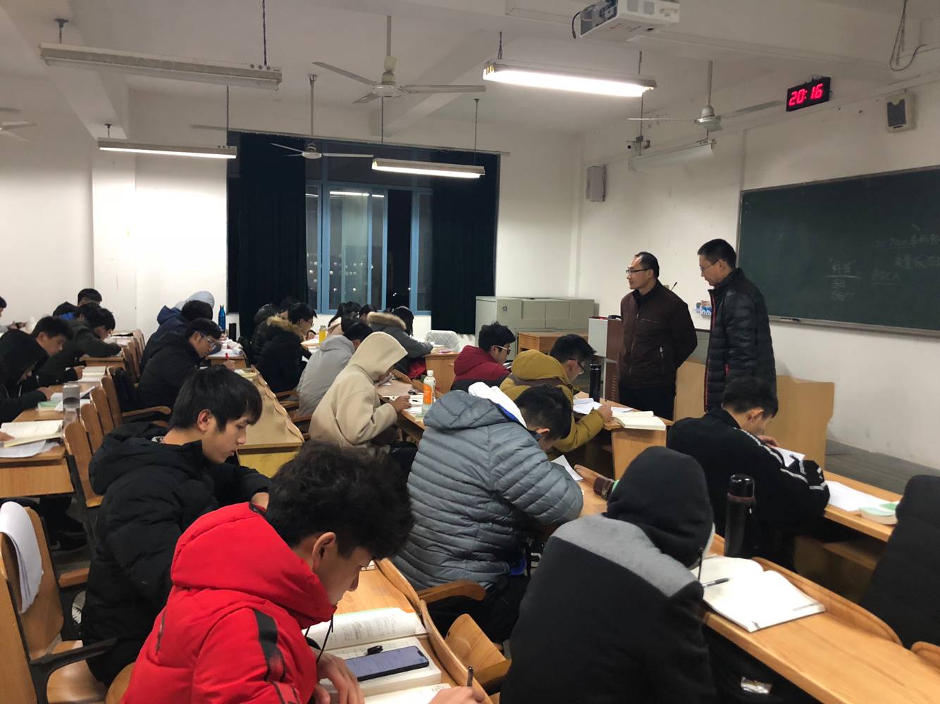 学院注重学风建设,探索开展学生自主管理实践,特意针对2018级学生采取班级民主决策早晚自习,并在学校不统一要求情况下,由学生干部自我管理和研究生助教协助方式进行学习实践活动。为深入了解学生学习情况,1月4日晚,学工部(处)副部(处)长冯广辉在我院党委副书记耿俊茂陪同下深入学院晚自习教室,检查我院学生自发组织的的晚自习情况。