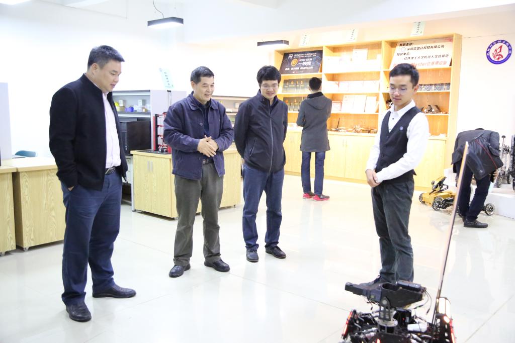 11月12日下午,由广西中医药大学副厅级调研员陈雪斌为组长的2018年广西高校思想政治工作质量提升工程项目检查组一行在学工部(处)相关负责人陪同下,莅临我院 “三全育人”平台——机器人创新实践基地进行检查指导,学院党委书记麦范金,党委副书记耿俊茂,院长助理秦建华陪同检查。