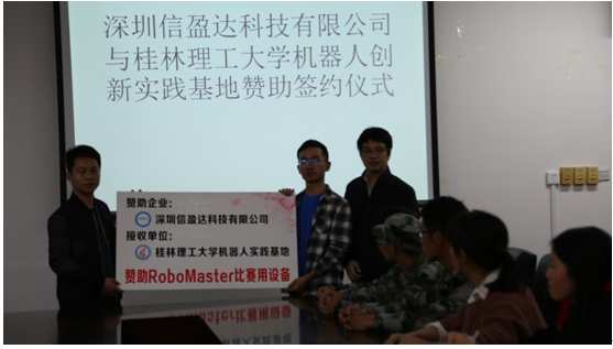 10月31日上午,机械与控制工程学院机器人创新实践基地与深圳信盈达科技有限公司赞助仪式在雁山校区07215举行。院长助理秦建华、机器人创新实践基地的部分指导老师及学生代表参加了仪式。仪式由院长助理秦建华老师主持。
