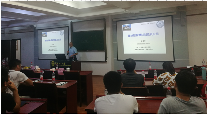 孙道恒教授做了题为“微纳结构增材制造及应用”的学术报告。孙教授对微纳制造技术的四个方向进行了介绍,引入到微纳器件研究,最后介绍了孙教授的团队在微纳结构的研究与应用。