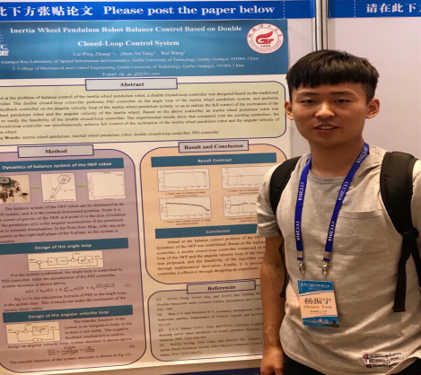 2018年7月25日至27日,我院控制工程2017级研究生杨振宇参加了在湖北省武汉市举办的2018第37届中国控制会议(CCC 2018)学术交流。会议期间杨振宇做了题为《Inertia Wheel Pendulum Robot Balance Control Based on Double Closed-Loop Control System》的论文张贴汇报,并与来自世界各地的参会人员进行了交流讨论。