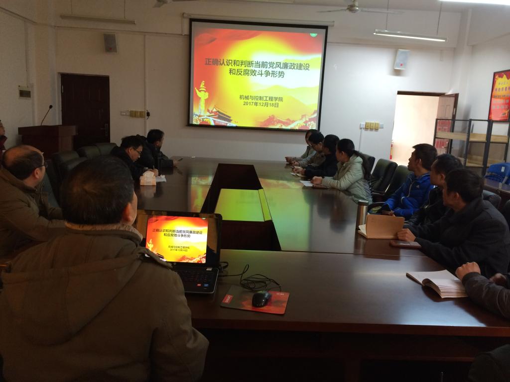 为进一步深入贯彻落实党的十九大精神和习近平总书记关于党风廉政建设和反腐败斗争系列重要讲话精神,进一步强化党员干部“四个意识”,营造风清气正的校园廉洁文化氛围,根据学校举办2017年秋季学期“廉政教育活动周”活动安排要求,12月18日下午,学院开展2017年秋季学期“廉政教育活动周”系列活动,活动由麦范金书记主持。
