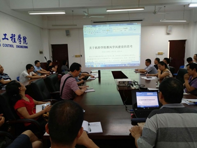2017年10月10日下午,学院在雁山校区07215会议室召开以“加强教风学风建设”为主要内容的专题学习教育会,学院领导和全体教职工参加了学习。会议由学院党委书记麦范金主持。