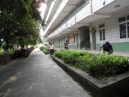 为积极响应学校《关于开展环境卫生大扫除暨教职工党员主题党日活动的通知》的精神,深入推进“美丽广西.清洁乡村.美丽校园” 活动的全面展开。2013年7月5日下午5点,在学院党委的号召下,我院组织领导干部、教工党员开展“打扫卫生,党员先行”主题党日活动。主要对本院卫生责任区域进行卫生大扫除。
