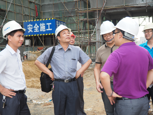 总经理助理杨正军(右二)人力资源部经理欧耀林 (左一) 陪同考察人员参观新的生产基地建设情况 (图4 )