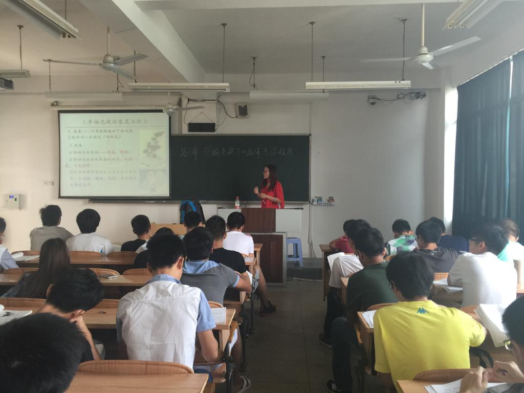 9月14日上午,为将“三严三实”专题教育落到实处,提高教师教学水平,推进学院教风建设,学院组织开展了公开示范课教学观摩活动,主讲教师是地球科学学院时毓老师。学院分管教学副院长李海侠及没有课的教师参加了此次教学观摩活动。