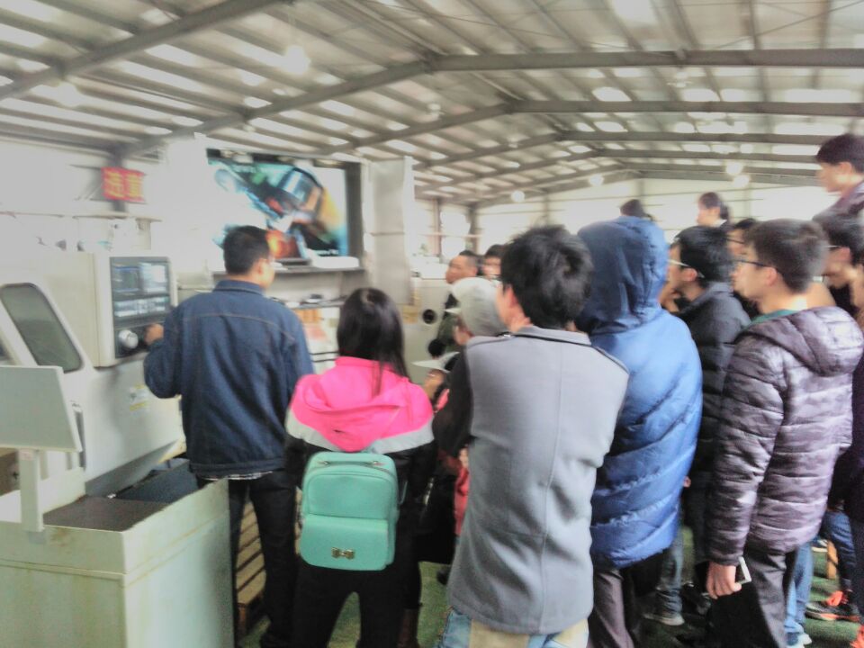 20151112日,认真组织教师开展听课,了解教学情况,相互学习,促进教学质量不断提高。数控车床听课现场,教师示范机床加工操作,教师通过设备与显示器相结合进行现场操作播放视频,认真、耐心、到位的指导学生进行现场示范实习教学。