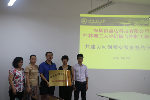 6月28日上午,机械与控制工程学院与深圳信盈达科技有限公司共建协同创新实验室签约仪式在雁山校区07209会议室举行。深圳信盈达科技有限公司人力资源部、技术部有关负责人,机械与控制工程学院相关领导及部分教师参加了签约仪式。