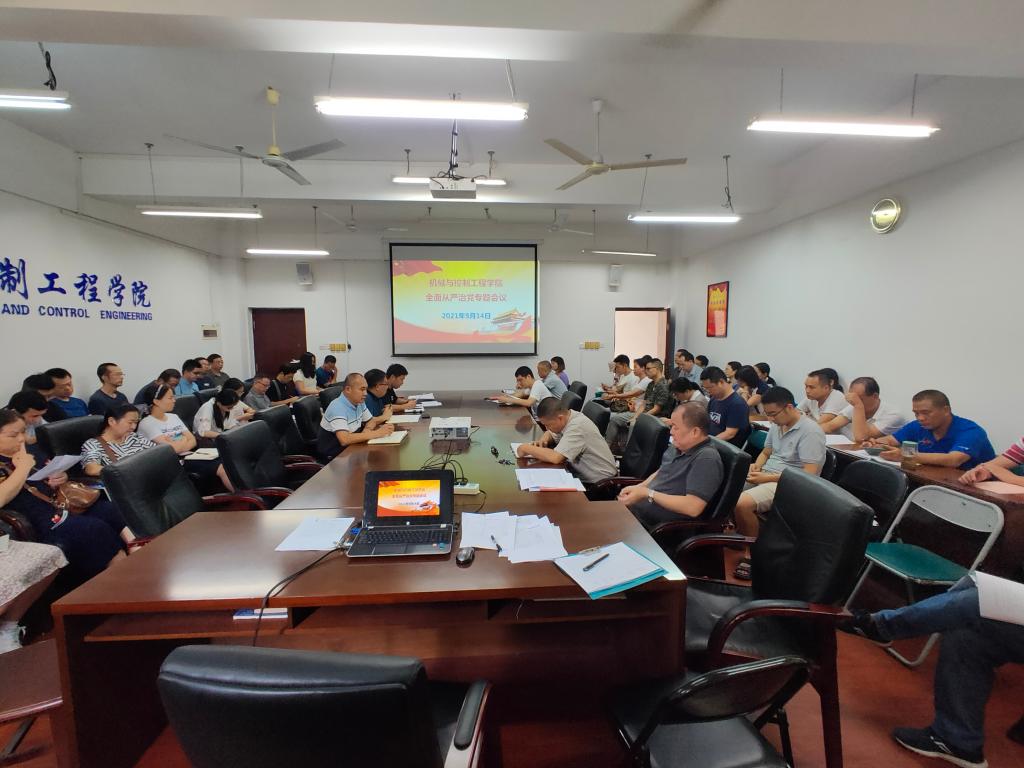 9月14日下午,学院党委书记耿俊茂在 07215会议室主持召开全面从严治党专题会议,学院党政领导班子全体成员、各党支部书记、全体教工党员参加会议。