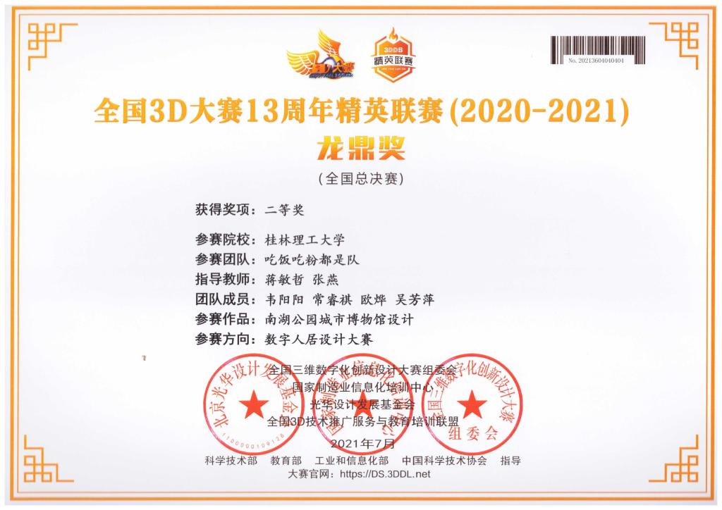 近日,全国三维数字化创新设计大赛13周年精英联赛全国总决赛落下帷幕,结合当前疫情防控形势,总决赛采用了线上为主的方式进行,全国总共有389所高校共有5556支队伍参赛,我校以机械与控制工程学院师生为主的代表队参加了该项赛事,参赛队喜获全国一等奖1项、二等奖2项、三等奖5项,广西赛区特等奖8项、一等奖9项、二等奖19项、三等奖8项。同时,我校荣获全国3D大赛13周年精英联赛优秀组织奖。