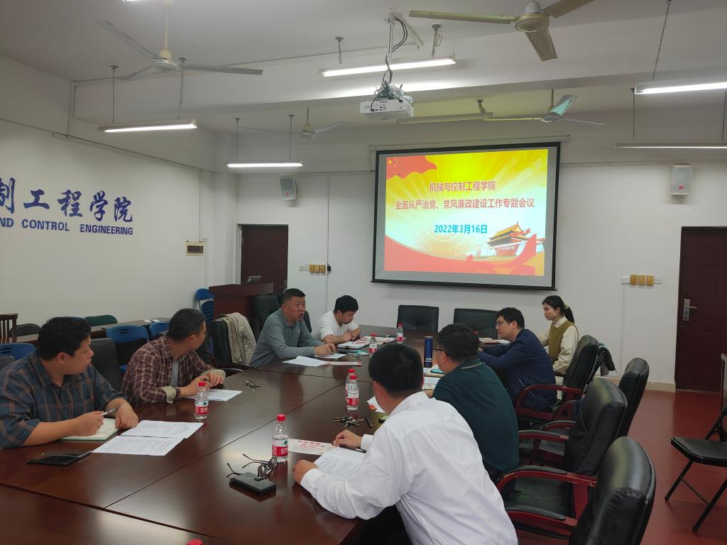 3月16日下午,学院在07215会议室召开2022年一季度全面从严治党、党风廉政建设工作会议,学院党政领导班子成员、纪委委员、党政办公室主任、支部书记代表参加会议,会议由党委书记李治主持。