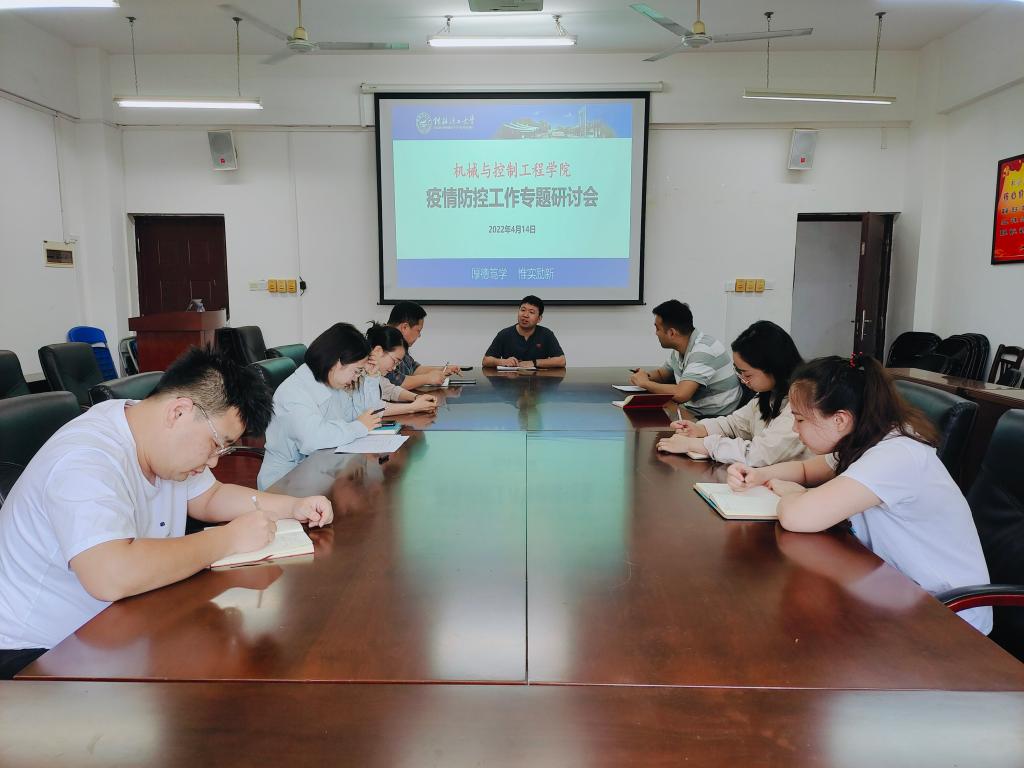 4月14日上午,机械与控制工程学院党委副书记王迎波在07215会议室主持召开疫情防控工作专题研讨会,学院全体辅导员参加。