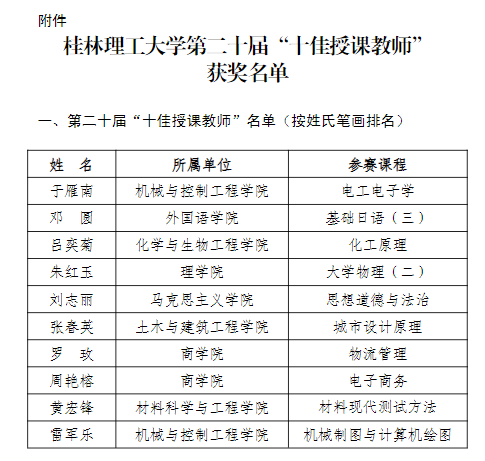 7月15日,我校教务处(教师教学发展中心)根据《关于开展学校第二十届“十佳授课教师”评选活动的通知》要求,经各教学单位预赛选拔、学校决赛、专家评议,公布了学校第二十届“十佳授课教师”教学竞赛获奖名单。我院于雁南、雷军乐老师获得学校第二十届“十佳授课教师”荣誉称号,学院获得优秀组织奖。
