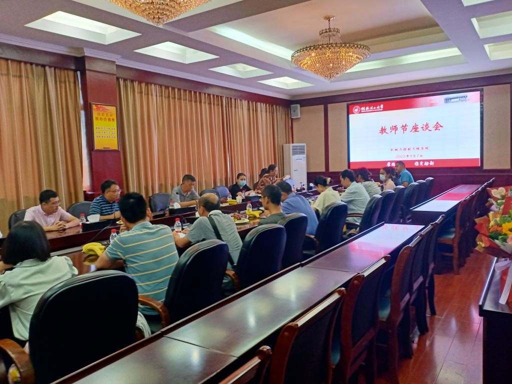 2022年9月7日下午,学院在屏风校区教八楼会议室举办优秀教师表彰暨教师节座谈会。会议由学院党委副书记、院长张烈平主持,学院党委书记李治,副院长李海侠、秦建华,教研室主任、实验中心主任以及教师代表参加了会议。