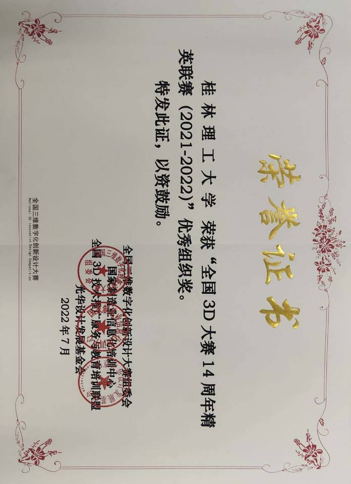 近日,2022全国3D大赛14周年精英联赛全国总决赛落下帷幕,结合当前疫情防控形势,总决赛采用了线上为主的方式进行。在学校的大力支持下,来自机械与控制工程学院、艺术学院、土木与建筑工程学院提交的8组作品进入总决赛,并在激烈的线上比拼中脱颖而出,获得全国一等奖1项、二等奖4项、三等奖3项的好成绩。同时,我校荣获优秀组织奖。