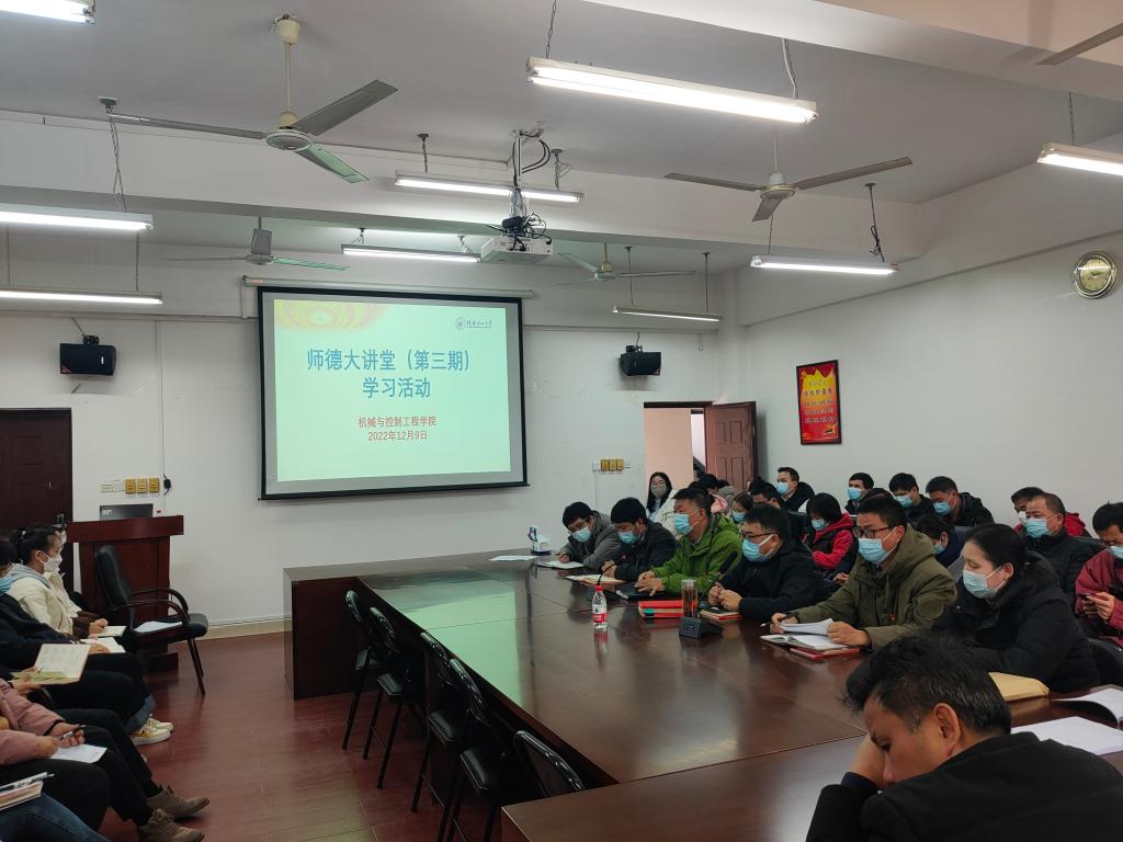12月9日,学院在07215会议室开展了“师德大讲堂”2022年(第3期)学习活动,活动由学院党委书记李治主持,全体教职工参加了本次活动。