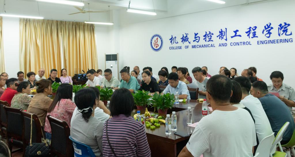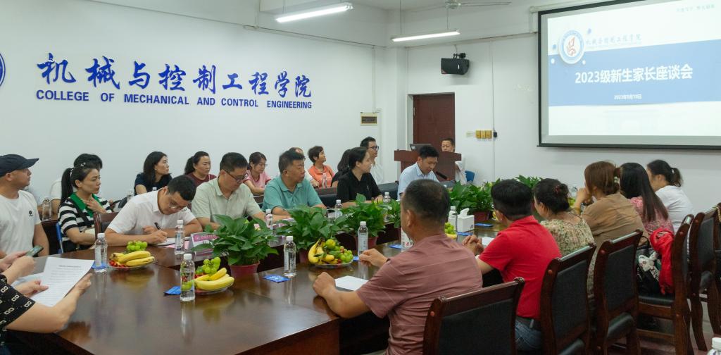 为全面落实立德树人根本任务,切实提高人才培养质量,发挥家校育人合力,机械与控制工程学院于9月10日下午在07215会议室召开2023级新生家长座谈会,学院党委书记李治,副书记王迎波,学院副院长李海侠、孙旋、秦建华,学工组长马文硕、2023级本科生辅导员刘威、2023级研究生辅导员刘培培及80余名2023级新生家长参加了此次座谈会。
