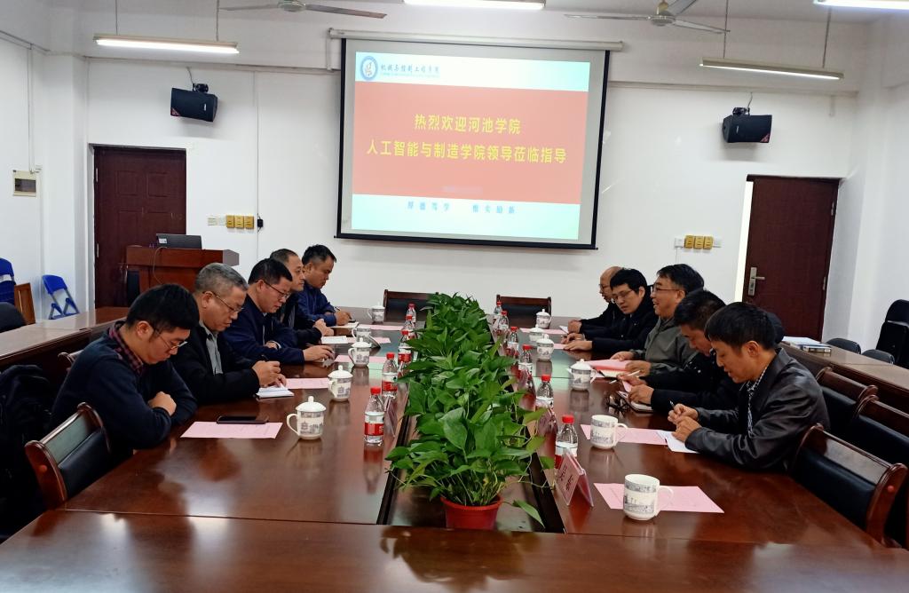 2023年11月17日下午,由河池学院科学与技术管理处彭建盛处长带队,何奇文、覃勇等一行5人来我院调研。我院张烈平院长、孙旋副院长等热情接待了来宾。