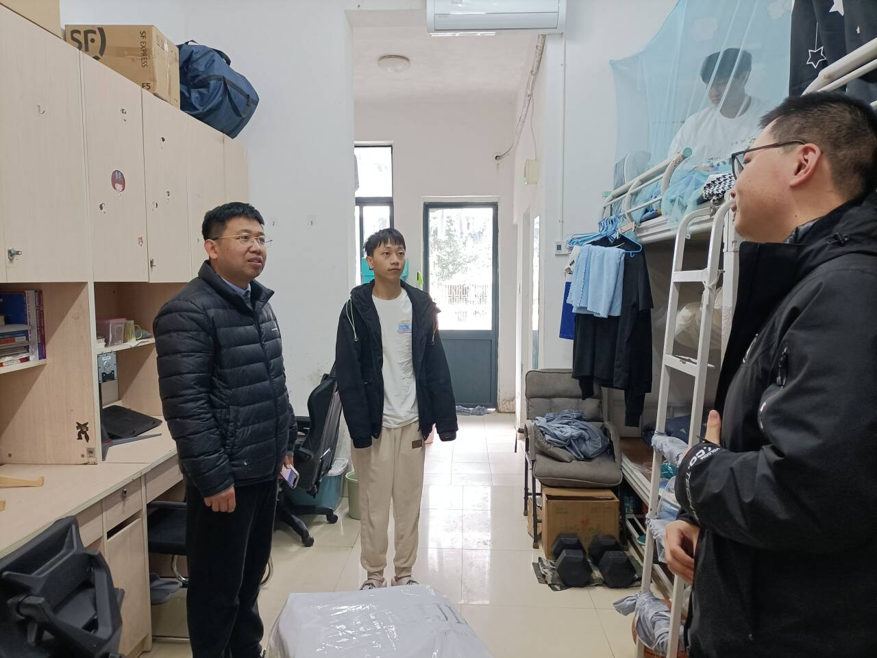 在走访宿舍过程中,学院领导老师与同学们亲切交流了寒假期间的生活学习情况和返校后新学期规划,倾听同学们目前在学习、生活中遇到的困难和问题,实时为同学们答疑解惑、解决困难,并提出宝贵建议。同时重点强调了宿舍安全卫生情况,提高宿舍安全意识,遵守宿舍管理规定,宿舍生活中要注意财产安全、用电安全和人身安全。加强宿舍清洁管理,保持宿舍环境卫生,营造良好舒适的宿舍环境,以更饱满的状态迎接新学期的学习和生活。