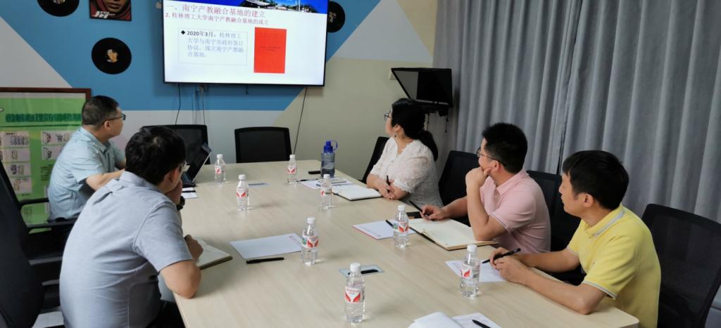 于雁南对胡主任带队来访表示热烈欢迎,并从学科建设、科学研究、人才培养等方面对学院进行了介绍。南宁产教融合基地任超副主任对南宁产教融合基地现状、产教融合目标、产教融合发展情况进行了介绍,从科研成果的孵化与创业支持、学院成果推介、促进产教融合、科研成果补助与支持等方面提出了基地与学院合作的设想。