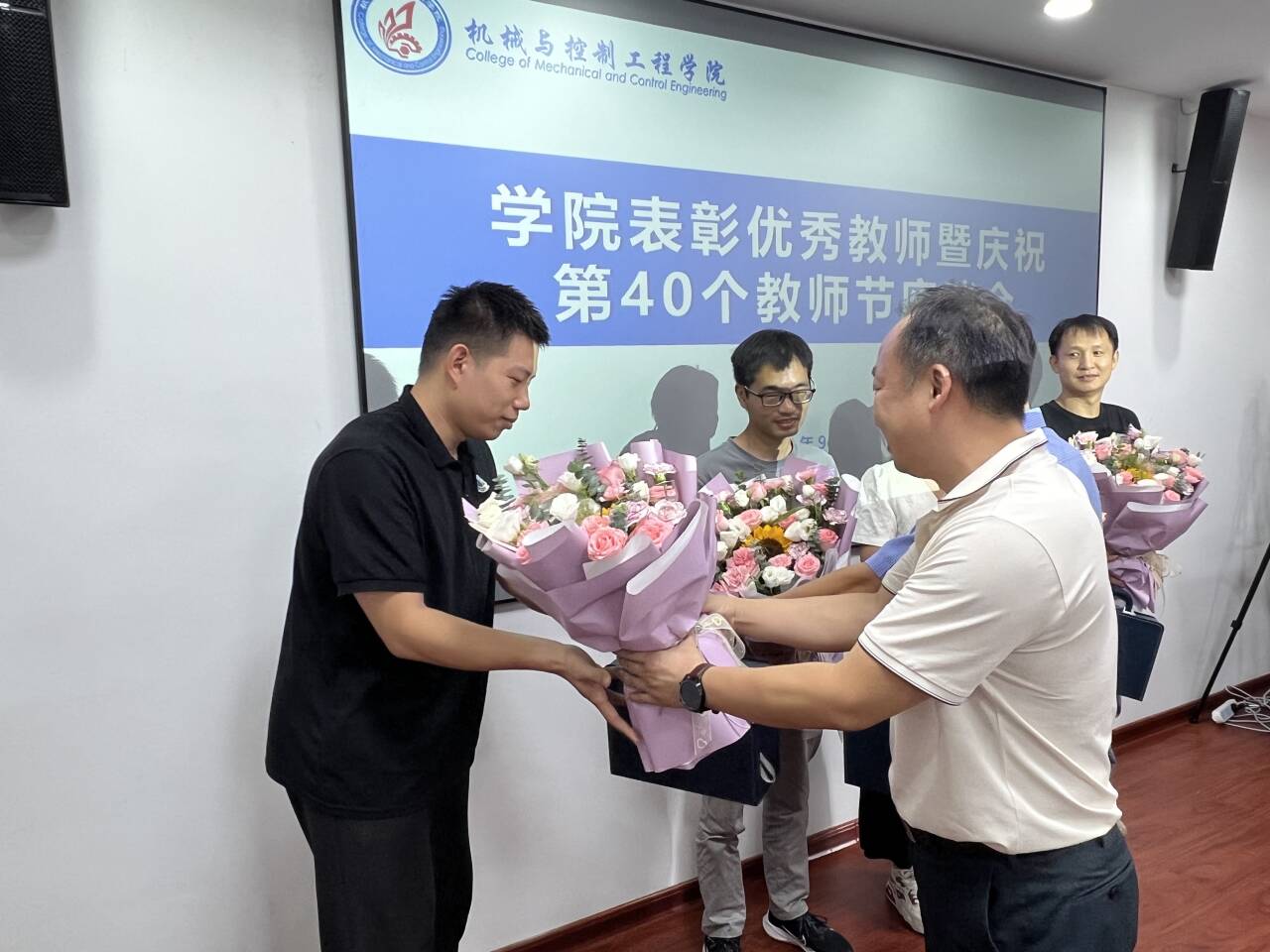 随后,学生代表为教师代表献花并赠送了精心准备的纪念礼品。表达了对老师们深切的敬意和感激之情。鲜花和礼物不仅象征着学生们对老师们辛勤付出的认可,也传递了师生之间的深厚情谊。