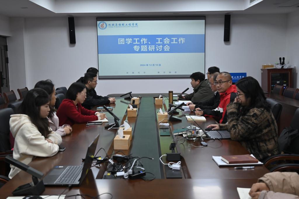 11月28日,机械与控制工程学院在学院07209会议室召开团学工作、工会工作专题研讨会。本次会议旨在总结2024年工作成果,明确来年工作方向和目标,进一步提升学院团学工作和工会工作的质量和水平。学院领导班子成员出席会议,相关老师及学生代表参加会议。