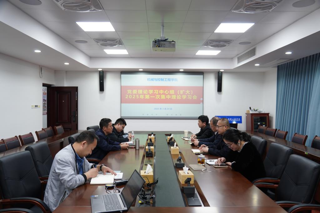3月24日下午,学院在7209会议室召开党委理论学习中心组(扩大)2025年第一次集中理论学习会,学习会由学院党委负责人主持,领导班子全体成员、院长助理、党政办主任、组织员参加。