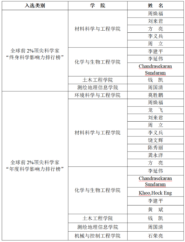 我校入选2025年度“全球前2%顶尖科学家榜单”名单