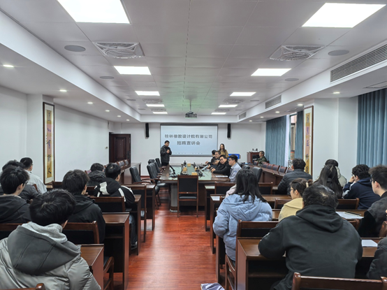 为扎实推进我院学生就业指导与服务工作,积极搭建毕业生与用人单位双向选择平台,12月24日下午15:00,桂林橡胶设计院有限公司受邀在我院雁山校区07209教室举办专场招聘宣讲会。学院党委副书记王迎波、辅导员罗泽明、王中豪及2022级学生和相关专业研究生参加了本次活动。