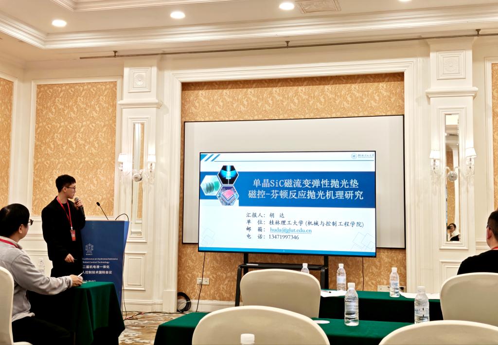 在3月28日的分论坛口头报告环节,三位教师围绕各自研究方向分享最新成果,获得与会同行关注与交流。苏丽云老师以《精密运动平台的非线性刚度设计及性能优化研究》为题,针对高精度装备核心运动部件,系统阐述非线性刚度设计方法,深入分析其对系统性能的提升机制,为精密运动平台优化设计提供理论与技术支撑。胡达老师作《单晶SiC磁流变弹性抛光垫磁控-芬顿反应抛光机理研究》报告,聚焦碳化硅超精密加工难题,创新性提出磁流变弹性体与芬顿反应相结合的抛光新方法,展示硬脆材料精密加工领域的前沿探索。刘仁顺老师汇报《骨植入体数字化设计与轻量化研究》成果,通过骨植入体结构优化实现轻量化目标,有效提升植入体生物相容性与患者使用舒适度,拓展数字化设计在医疗植入器械领域的应用场景。