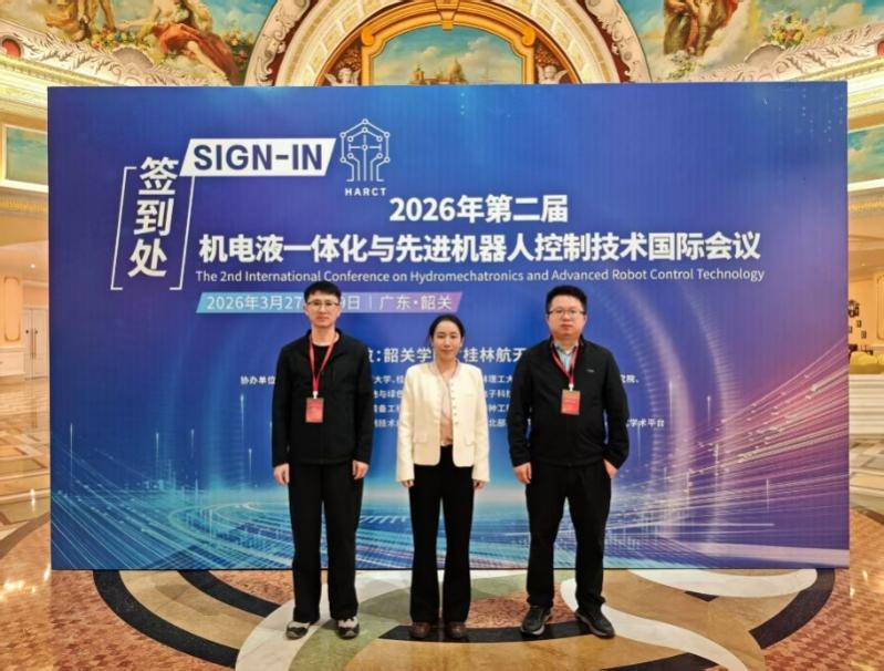 2026年3月27日至29日,2026年第二届机电液一体化与先进机器人控制技术国际会议(HARCT 2026)在广东韶关顺利举行。我院苏丽云、胡达、刘仁顺三位青年教师受邀参会,并在分论坛作专题学术报告,充分展示学院在相关领域的研究成果与学术实力。