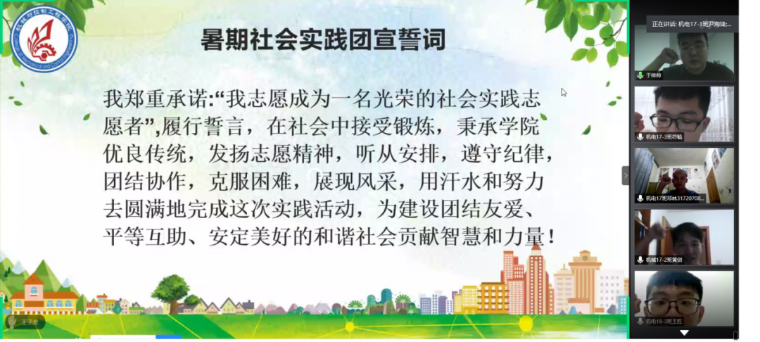 为深入学习贯彻习近平新时代中国特色社会主义思想,带领青年在全面建成小康社会收官之年和疫情防控的关键时期贡献青春力量,展现青春风采,7月14日晚19:30,机械与控制工程学院通过视频会议开展了暑期“三下乡”社会实践活动动员暨安全教育大会。此次会议由学院团委副书记(主持工作)于帅帅主持召开,“三下乡”社会实践活动中的300多名同学共同参与了本次会议。