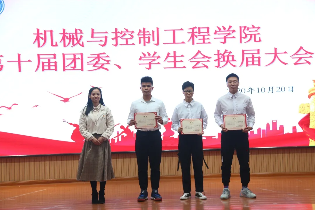 在激昂的团歌下,机械与控制工程学院团委、学生会第十届换届大会拉开帷幕。往届团委学生副书记、学生会主席团代表、融媒体主任团代表进行了述职发言。