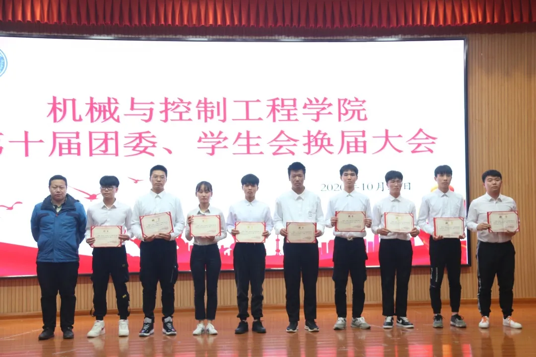 为进一步提升学生干部素养,加强对青年学生的思想引领,培养担当民族复兴大任的时代新青年,2020年10月20日19:30,机械与控制工程学院于图书馆报告厅隆重举行“2020年度机械与控制工程学院迎新活动先进个人及志愿者表彰大会暨第十届团委、学生会换届大会”。出席本次大会的有学院学工组组长马文硕老师、团委书记于帅帅老师、19级辅导员李峰老师,20级辅导员滕漳红老师,18级兼职辅导员张敏老师以及学院团委、学生会全体学生干部和实习干事。