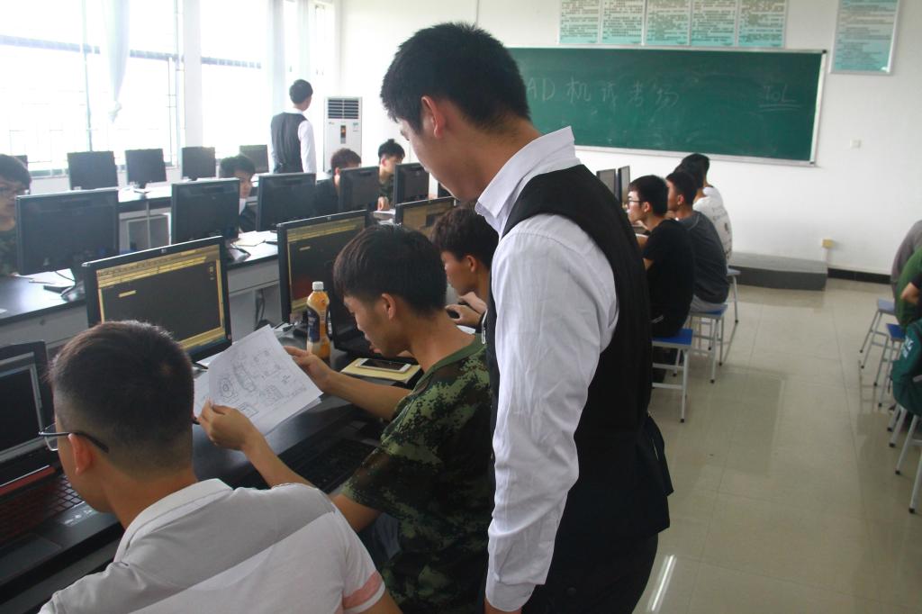 在此次的CAD制图大赛中,考核分为了两个部分,分别是笔试和机试,笔试在06201室,机试在08404室,这两部分的考核同时开始!并由我院的团委学生会的成员进行监考,考核过程中,同学们积极配合,独立自主的完成了各自任务。在笔试考场,同学们用沙沙的画图声展现出了他们扎实的理论基础,在机试的考场,那哒哒的敲键盘的声音,体现出了同学们非凡的操作能力。
