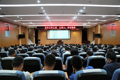 讲座开始,李君教授和同学们互动,感受一下音乐美,并建议同学们在平时繁忙学业中,去学习一下艺术,在音乐中陶冶自己的情操。接着,李君教授向同学们解锁音乐文学的含义通过形象具体地反映社会生活,表达作者思想感情。随后李君教授又以古代诗词为引,导出了古代文学与音乐的联系,与近代做出对比,将音乐与文学彻底的绑在了一起,同时先后讲了田汉,聂耳等几位伟大的音乐家,在场同学对音乐家有了更深入的认识。最后讲座在《习近平和彭麻麻》的歌声中圆满结束。