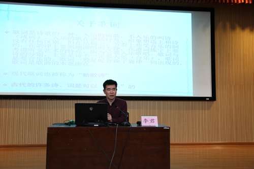 为激发同学们对音乐的热爱,感受音乐的魅力,10月17日下午,我院有幸邀请到来自艺术学院的李君教授在雁山图书馆报告厅作“音乐文学之美”的讲座。学院党委邓洁琼副书记出席并主持了本次讲座,学院16级17级学生参加了本次讲座。