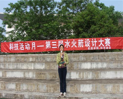 4月26日上午,我院科技文化节之“水火箭比赛”在雁山风雨操场成功举办,学院党委副书记邓洁琼出席本次比赛,来自各个院的一百多支队伍参加了本次比赛。