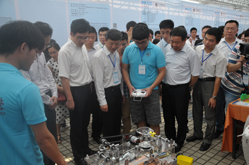 我院本科生蔡灿鸿、刘付尤、方京浪、莫胜军的作品《教学步行机器人》参加了创新项目展示,莫胜军、陈丽燕的论文《夜间行车导向灯的研究》参加大学生学术论坛答辩,此外,我院学子还进行了无人机、航模、机器人作品现场操控展示。充分展现了我院创新创业项目成果及我院学子的精神面貌,吸引了兄弟院校及专家的驻足观看和交流。