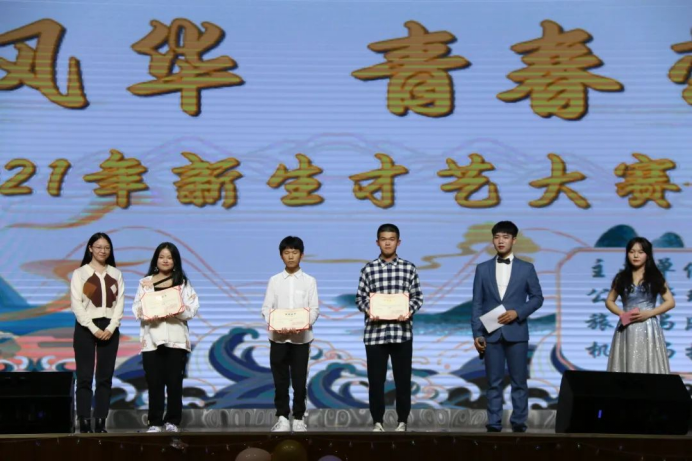为了给新生展示自我、拥抱青春的机会,让新生更好地融入到大学生活,2021年11月5日晚,我院与管媒学院、旅游学院在新体育馆联合举办2021“百年风华 青春荣发”新生才艺大赛。