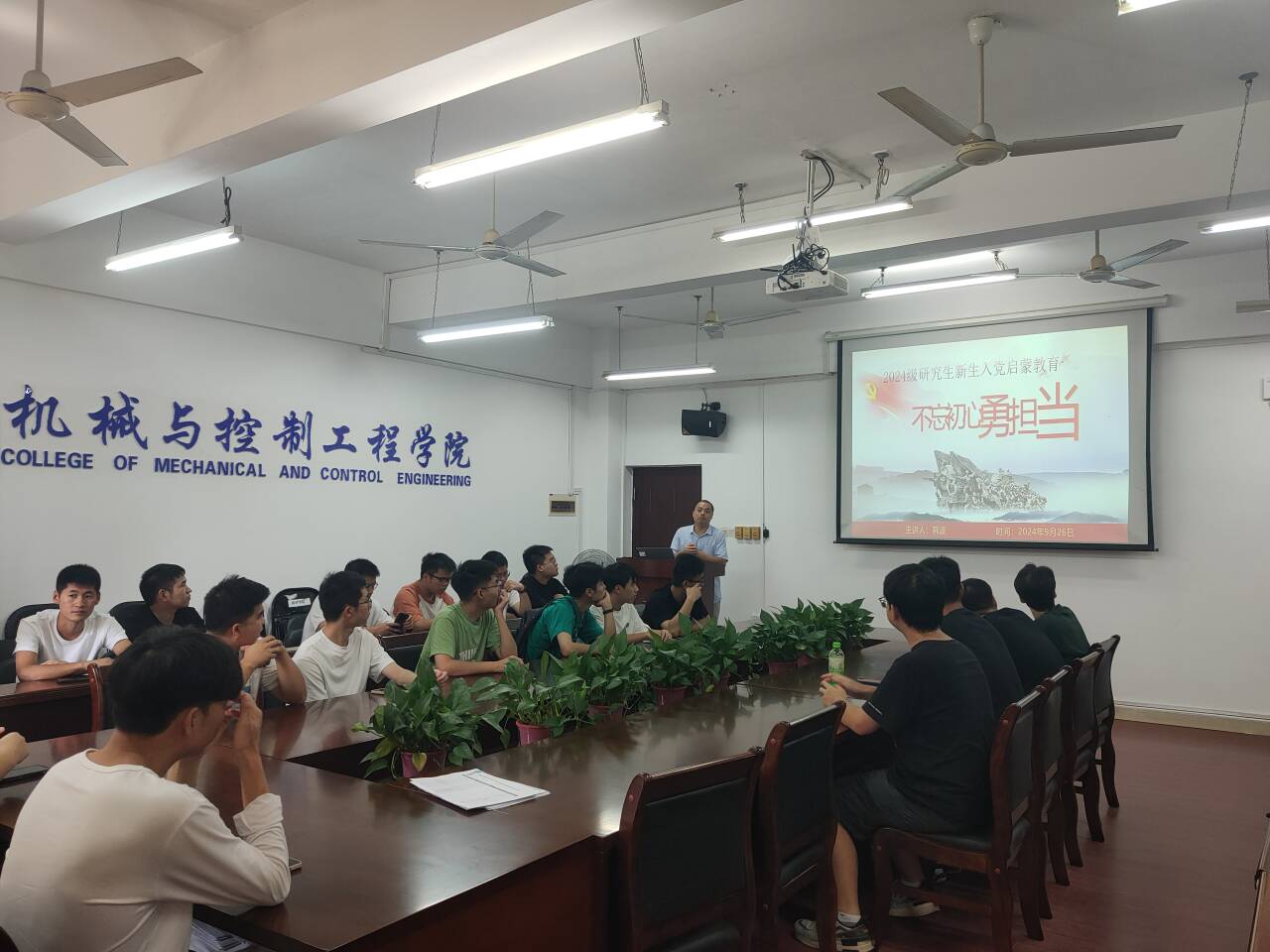 2024年9月26日,学院在7215开展研究生“一研为钉”教育品牌活动之新生入党启蒙教育,活动由学院组织员韩波主讲,2024级研究生新生参加。