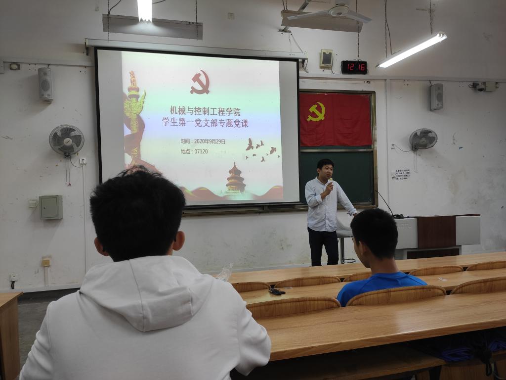 为深入学习贯彻习近平新时代中国特色社会主义思想,加强对《习近平谈治国理政》第三卷的学习,增强全体党员的责任意识和爱国情怀。学生第一党支部于2020年9月29日中午在教学楼07120召开了《习近平谈治国理政》第三卷的专题党课。由学院党委副书记王迎波老师主持并讲解本次党课学习,支部全体成员参加此次会议。